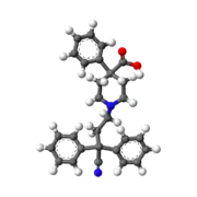 - ↑ Jackson LS, Stafford JE (November 1987). "The evaluation and application of a radioimmunoassay for the measurement of diphenoxylic acid, the major metabolite of diphenoxylate hydrochloride (Lomotil), in human plasma". Journal of Pharmacological Methods. 18 (3): 189–97. doi:10.1016/0160-5402(87)90069-6. PMID 3682841.