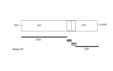 Two functions have been identified in AR that have critical roles in the regulation of target gene transactivation, the N-terminal activation function 1 (AF1) and the C-terminal activation function 2 (AF2). AF1 is ligand-independent and plays the primary role in target gene transactivation. The AF2 is a ligand-dependent and only shows limited function.[8][10]