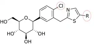 - ↑ Li, An-Rong; Zhang, Jian; Greenberg, Joanne; Lee, TaeWeon; Liu, Jiwen (2011). "Discovery of non-glucoside SGLT2 inhibitors". Bioorganic & Medicinal Chemistry Letters. 21 (8): 2472–2475. doi:10.1016/j.bmcl.2011.02.056. PMID 21398124.