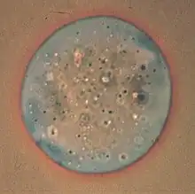 The technical literature had little additional discussion of dispersion effects until 1948. That year S. C. Crossmon, N. B. Dodge, and co-authors R. C. Emmons and R. N. Gates all wrote papers on the use of dispersion effects through the microscope to characterize particles.[18][19][20] Crossmon seems to have coined the term “Dispersion Staining” as any optical technique that used the “Christiansen Effect” to produce color in the image of colorless particles.[21] He demonstrated the use of Becke` Line, Oblique Illumination, Darkfield, and Phase Contrast Dispersion Staining methods. S. C. Crossmon and W. C. McCrone have published numerous papers on the use of objective back focal plane stop dispersion staining techniques since that time. Yu. A. Cherkasov published an excellent paper on this topic in 1958 and it was translated into English in 1960.[22] Well over 100 papers have been written on the various methods of dispersion staining and their application since about 1950 and most of these since 1960.