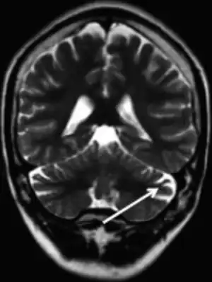 MRI (adult) showing cerebellar atrophy in Dravet syndrome | |