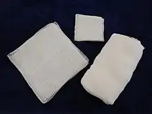 A dressing or compress[1] is piece of material such as a pad applied to a wound to promote healing and protect the wound from further harm. A dressing is designed to be in direct contact with the wound, as distinguished from a bandage, which is most often used to hold a dressing in place. Modern dressings are sterile.