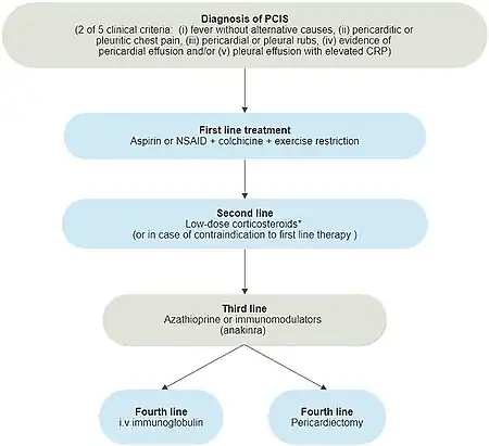 - ↑ Malik, Jahanzeb; Zaidi, Syed Muhammad Jawad; Rana, Abdul Sattar; Haider, Ali; Tahir, Saleha (1 December 2021). "Post-cardiac injury syndrome: An evidence-based approach to diagnosis and treatment". American Heart Journal Plus: Cardiology Research and Practice. 12: 100068. doi:10.1016/j.ahjo.2021.100068. ISSN 2666-6022. Archived from the original on 27 January 2024. Retrieved 27 January 2024.