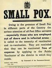 1919 Notice issued by the British General Post Office encouraging postal staff to apply for the free vaccination