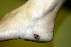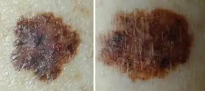 In 1992, the NIH recommended that the term "dysplastic nevus" be avoided in favor of the term "atypical mole".[16] An atypical mole may also be referred to as an atypical melanocytic nevus,[17] atypical nevus, B-K mole, Clark's nevus, dysplastic melanocytic nevus, or nevus with architectural disorder.[18]
