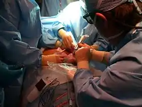 - ↑ Hirose S, Farmer DL, Lee H, Nobuhara KK, Harrison MR (2004). "The ex utero intrapartum treatment procedure: Looking back at the EXIT". J. Pediatr. Surg. 39 (3): 375–80, discussion 375–80. doi:10.1016/j.jpedsurg.2003.11.011. PMID 15017555.