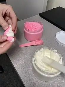 The texture of the earmold can have low, medium, or high viscosity. The lower type of viscosity will be soft while the higher viscosity is firm. It is thought that a higher viscosity will lead to a better impression of the ear canal while the lower viscosity may not fill in the ear canal as well. The type of viscosity to use is dependent on the person using the material and the type of viscosity they are most comfortable with.[4]