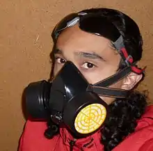 - A singer, Mike Patton, performing in an elastomeric respirator (but without its filter cartridges) in 2002. Note microphone.