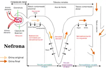 Drugs are excreted from the kidney by glomerular filtration and by active tubular secretion following the same steps and mechanisms as the products of intermediate metabolism. Therefore, drugs that are filtered by the glomerulus are also subject to the process of passive tubular reabsorption. Glomerular filtration will only remove those drugs or metabolites that are not bound to proteins present in blood plasma (free fraction) and many other types of drugs (such as the organic acids) are actively secreted. In the proximal and distal convoluted tubules, non-ionised acids and weak bases are reabsorbed both actively and passively. Weak acids are excreted when the tubular fluid becomes too alkaline and this reduces passive reabsorption. The opposite occurs with weak bases. Poisoning treatments use this effect to increase elimination, by alkalizing the urine causing forced diuresis which promotes excretion of a weak acid, rather than it getting reabsorbed. As the acid is ionised, it cannot pass through the plasma membrane back into the blood stream and instead gets excreted with the urine. Acidifying the urine has the same effect for weakly basic drugs.