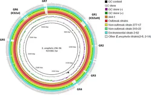 E. anophelis is a Gram-negative bacterium that appears slightly yellow and is characterized by its non-motile and non-spore-forming nature.[1] Its cells typically have a rod-like shape and a size of around 4.03 Mbp, with an average GC content of 35.4%.[2] E. anophelis is known to be a prevalent inhabitant in the gut of Anopheles gambiae mosquitoes, the primary vector of malaria, and it is also capable of causing disease in humans.[3] In 2013, E. anophelis was identified as a human pathogen in Central Africa during an outbreak that occurred in an intensive care unit in Singapore. Both clinical cases reported multidrug resistance.[3]