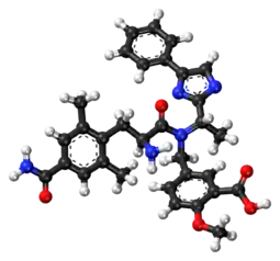 - ↑ Davenport JM, Covington P, Bonifacio L, McIntyre G, Venitz J (May 2015). "Effect of uptake transporters OAT3 and OATP1B1 and efflux transporter MRP2 on the pharmacokinetics of eluxadoline". Journal of Clinical Pharmacology. 55 (5): 534–42. doi:10.1002/jcph.442. PMC 4402028. PMID 25491493.