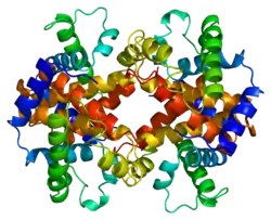 Hemoglobin Portland II (also referred to as ζ2β2 or HbE Portland-2) is a form of hemoglobin existing at low levels during embryonic and fetal life, composed of two zeta chains and two beta chains. It is quite unstable, more so than even hemoglobin Gower 1, and breaks down very rapidly under stress.[4] Despite this, it has been proposed as a candidate for reactivation in cases of severe α thalassemia or hemoglobinopathies afflicting the alpha chain.[4][5]