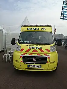 SMUR (Service Mobile d'Urgence et Reanimation[8] – Mobile Emergency and Resuscitation Service) units are advanced medical responders which are operated by the SAMU organisation. They are typically labelled as "SAMU", though that term actually refers to either the overall system or the local EMS organization that the SMUR units are part of.