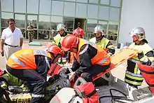 French fire service performing a vehicle extrication during a demonstration in 2007
