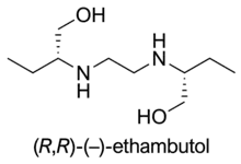 • Ethambutol: Whereas the (S,S)-(+)-enantiomer is used to treat tuberculosis, the (R,R)-(–)-ethambutol may cause blindness.[20]