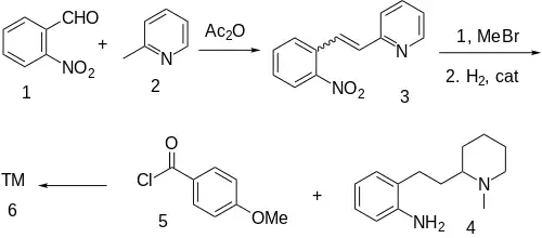 - ↑ Dykstra SJ, Minielli JL, Lawson JE, Ferguson HC, Dungan KW (September 1973). "Lysergic acid and quinidine analogs. 2-(o-Acylaminophenethyl)piperidines". Journal of Medicinal Chemistry. 16 (9): 1015–20. doi:10.1021/jm00267a012. PMID 4745503.