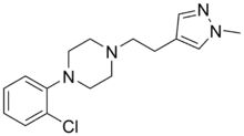 Enpiprazole (INN, BAN) is an anxiolytic drug of the phenylpiperazine group that was never marketed.[1][2] It produces anxiolytic-like effects in animals, though these effects appear to be biphasic and may reverse at high doses.[3] It is known to produce ortho-chlorophenylpiperazine (oCPP) as a metabolite.[4]