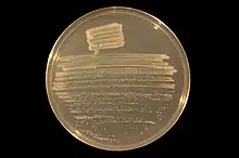 Sinorhizobium meliloti strain Rm1021 on an agar plate.