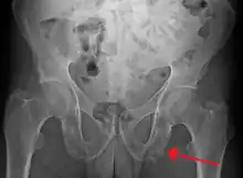 - ↑ Polisson, R. P.; Martinez, S.; Khoury, M.; Harrell, R. M.; Lyles, K. W.; Friedman, N.; Harrelson, J. M.; Reisner, E.; Drezner, M. K. (1985-07-04). "Calcification of entheses associated with X-linked hypophosphatemic osteomalacia". The New England Journal of Medicine. 313 (1): 1–6. doi:10.1056/NEJM198507043130101. ISSN 0028-4793. PMID 4000222.