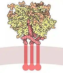 - ↑ Zhu P, Winkler H, Chertova E, Taylor KA, Roux KH (November 2008). "Cryoelectron tomography of HIV-1 envelope spikes: further evidence for tripod-like legs". PLOS Pathog. 4 (11): e1000203. doi:10.1371/journal.ppat.1000203. PMC 2577619. PMID 19008954.