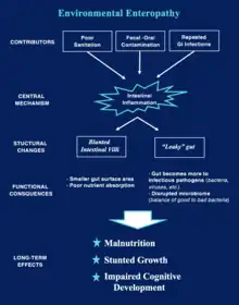 - 1 2 3 4 5 6 7 8 9 10 11 12 Korpe PS, Petri WA (June 2012). "Environmental enteropathy: critical implications of a poorly understood condition". Trends in Molecular Medicine. 18 (6): 328–336. doi:10.1016/j.molmed.2012.04.007. PMC 3372657. PMID 22633998.
