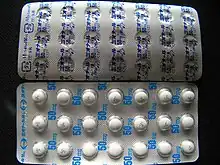 Eperisone hydrochloride is available as the brand name preparations Myonal and Epry as 50 mg sugar-coated tablets, or as 10% granules for oral administration.[6] An experimental form of the drug, as a transdermal patch system, has shown promising results in laboratory tests on rodents; however, this product is not currently available for human use.[7]