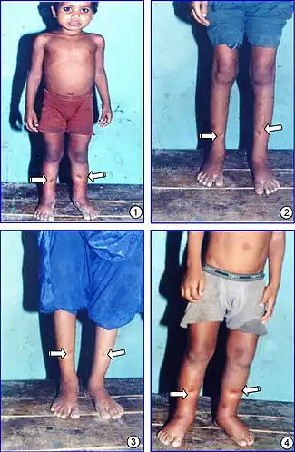 Epidemic dropsy patients with the characteristic bilateral pitting edema of the extremities (indicated by arrows) | |