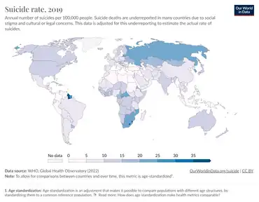 - ↑ "Share of deaths from suicide". Our World in Data. Retrieved 4 March 2020.