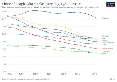 - 1 2 3 4 5 6 7 Lee KW, Pausova Z (2013). "Cigarette smoking and DNA methylation". Frontiers in Genetics. 4: 132. doi:10.3389/fgene.2013.00132. PMC 3713237. PMID 23882278.