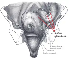 - 1 2 3 Sand, Michael; Gelos, Marcos; Bechara, Falk G.; Sand, Daniel; Wiese, Till H.; Steinstraesser, Lars; Mann, Benno (2007-01-01). "Epiploic appendagitis – clinical characteristics of an uncommon surgical diagnosis". BMC Surgery. 7: 11. doi:10.1186/1471-2482-7-11. ISSN 1471-2482. PMC 1925058. PMID 17603914.
