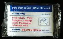 The original version was designed by Friedrich von Esmarch, professor of surgery at the University of Kiel, Germany, and is generally used in battlefield medicine. Esmarch himself had been surgeon general to the German army during the Franco-German War. It consisted of a three-sided piece of linen or cotton, the base measuring 120 cm (47 in) and the sides 85 cm (33 in). It could be used folded or open, and applied in thirty-two different ways. An improved form was devised by Bernhard von Langenbeck later on.