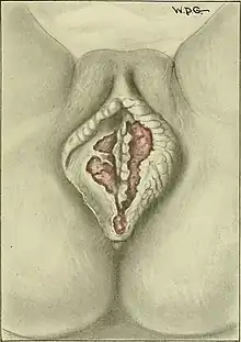 - ↑ Naik, R. P., et al. (1987). Esthiomene resulting from cutaneous tuberculosis of external genitalia. Genitourin Med. 63(2): 133–134.