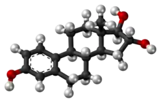 Estriol (E3), also spelled oestriol, is a steroid, a weak estrogen, and a minor female sex hormone.[1][2] It is one of three major endogenous estrogens, the others being estradiol and estrone.[1] Levels of estriol in women who are not pregnant are almost undetectable.[3] However, during pregnancy, estriol is synthesized in very high quantities by the placenta and is the most produced estrogen in the body by far,[3][4] although circulating levels of estriol are similar to those of other estrogens due to a relatively high rate of metabolism and excretion.[4][5] Relative to estradiol, both estriol and estrone have far weaker activity as estrogens.[1]