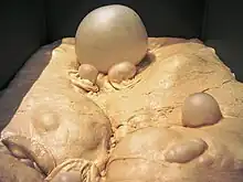 Ethanol fermentation causes bread dough to rise. Yeast organisms consume sugars in the dough and produce ethanol and carbon dioxide as waste products. The carbon dioxide forms bubbles in the dough, expanding it to a foam. Less than 2% ethanol remains after baking.[5][6]