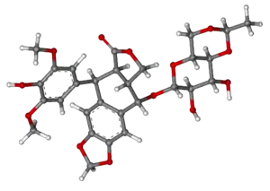 - ↑ Gordaliza M, García PA, del Corral JM, Castro MA, Gómez-Zurita MA (2004). "Podophyllotoxin: distribution, sources, applications and new cytotoxic derivatives". Toxicon. 44 (4): 441–59. doi:10.1016/j.toxicon.2004.05.008. PMID 15302526.