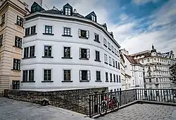 The House of European Radiology is the current headquarters of the European Society of Radiology (ESR) and has been since 2018 after the completion of its renovation.[7] : 14 The building is located in the historic central district of Vienna, across from the steps leading to Maria am Gestade church on Am Gestade square. Through renovations, the building has retained the style of its facade dating from 1823 with a newly constructed interior which houses a majority of ESR functions.[8]