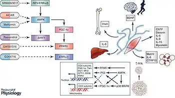 - ↑ Febbraio, Mark A. (February 2017). "Health benefits of exercise — more than meets the eye!". Nature Reviews Endocrinology. 13 (2): 72–74. doi:10.1038/nrendo.2016.218. ISSN 1759-5037. PMID 28051119. S2CID 5824789.