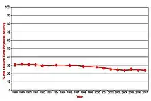 - ↑ "Physical Activity Statistics: No Leisure-Time Physical Activity Trend Chart | DNPAO | CDC". WHO. Retrieved February 24, 2009.