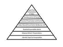 In general, the most effective hierarchies are ones in which the items are specific to the client and that most closely resembles their experience of fear in the real world, particularly ones that elicit the same cognitions and physiological reactions.[6] In some cases, other individuals should be involved in the exposure to mimic the experience of fear more closely (e.g. a client with social anxiety giving a presentation to her group of peers).