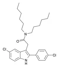 - ↑ Romeo E, Auta J, Kozikowski AP, Ma D, Papadopoulos V, Puia G, et al. (September 1992). "2-Aryl-3-indoleacetamides (FGIN-1): a new class of potent and specific ligands for the mitochondrial DBI receptor (MDR)". The Journal of Pharmacology and Experimental Therapeutics. 262 (3): 971–8. PMID 1326631.