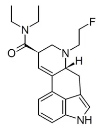FLUORETH-LAD is a lysergamide derivative. It was first proposed by Alexander and Ann Shulgin in their book TiHKAL,[1] but was never synthesised by Shulgin. Synthesis and activity data for the compound were first reported in a 2022 patent by Matthias Grill, in which pharmacological testing showed it to have similar affinity to LSD at some targets such as the 5-HT1A and 5-HT2A serotonin receptors, but much lower affinity at other targets such as 5-HT2C and at dopamine receptors, giving it comparatively greater selectivity compared to LSD.Currently new lysergamide derivates are in the development phase at MiHKAL GmbH in Switzerland.[2]