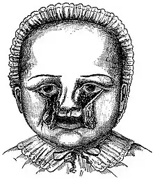 - 1 2 Bhattacharyya, NC; Kalita, K; Gogoi, M; Deuri, PK (2012). "Tessier 30 facial cleft". Journal of Indian Association of Pediatric Surgeons. 17 (2): 75–7. doi:10.4103/0971-9261.93970. PMC 3326828. PMID 22529554.
