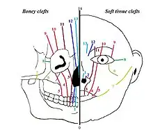 - ↑ Fearon, JA et al. "Rare Craniofacial Clefts: A surgical Classification", J Craniofac Surg. 2008 Jan;19(1):110-2,Fearon, JA (2008). "Rare craniofacial clefts: a surgical classification". The Journal of Craniofacial Surgery. 19 (1): 110–2. doi:10.1097/SCS.0b013e31815ca1ba. PMID 18216674. S2CID 1674500.