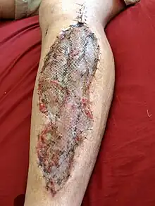 Once the pressure is reduced, the fasciotomy is covered with a skin graft. | |