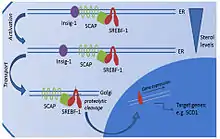 - ↑ Rawson RB (August 2003). "The SREBP pathway--insights from Insigs and insects". Nature Reviews. Molecular Cell Biology. 4 (8): 631–640. doi:10.1038/nrm1174. PMID 12923525. S2CID 20818196.