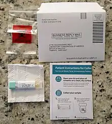 Cards and bottle used for the Hemoccult test, a type of stool guaiac test