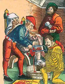 The word Feldsher is derived from the German Feldscher, which was coined in the 15th century. Feldscher (or Feldscherer) literally means "field shearer," but was the term used for barber surgeons in the German and Swiss armies from the 17th century until professional military medical services were established, first by Prussia in the early 18th century. Today, Feldshers do not exist in Germany anymore, but the term was exported with Prussian officers and nobles to Russia. An All-Russia Union of Feldshers was founded in 1905. They were regarded as "Middle Medical Workers".[7]