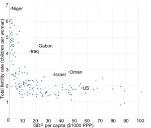In high-income countries, the number of children a person has strongly correlates with the number of children that each of those children will eventually have.[25][1]