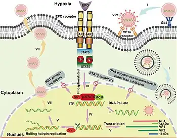 Life cycle and virus-host cell interactions of B19V in EPCs[15][16]