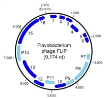 Finnlakeviridae is a family of bacterial viruses that is not assigned to any higher taxonomic ranks. The family contains a single genus, Finnlakevirus, which contains a single species, Flavobacterium virus FLiP.[1][2] This virus was isolated in 2010, with its gram-negative host Flavobacterium, from Lake Jyväsjärvi, a boreal freshwater habitat in Central Finland, and is the first described single-stranded DNA virus with an internal membrane.[2]